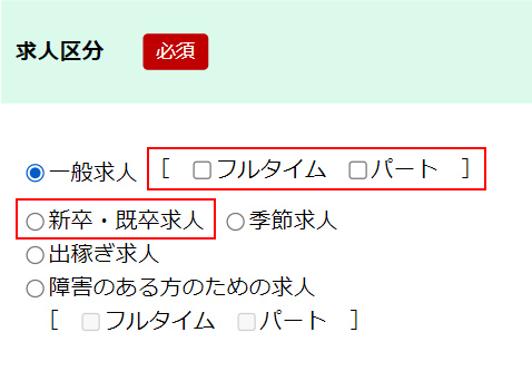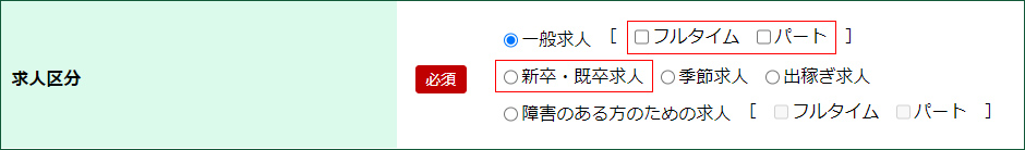 パート・アルバイトの方は、「一般求人[フルタイム・パート]」にチェックを入れてください。