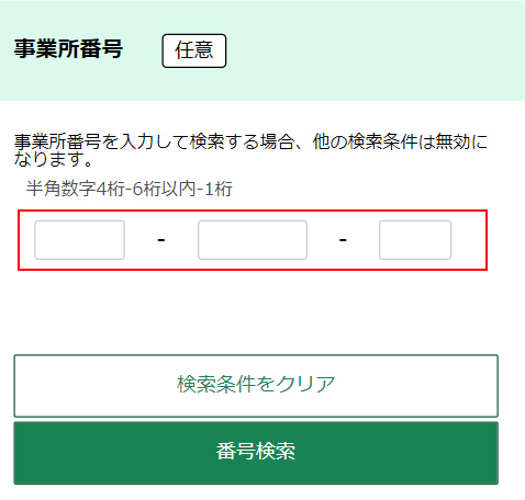 事業所番号に「0401-106871-1」を入力して「番号検索」をクリックしてください。