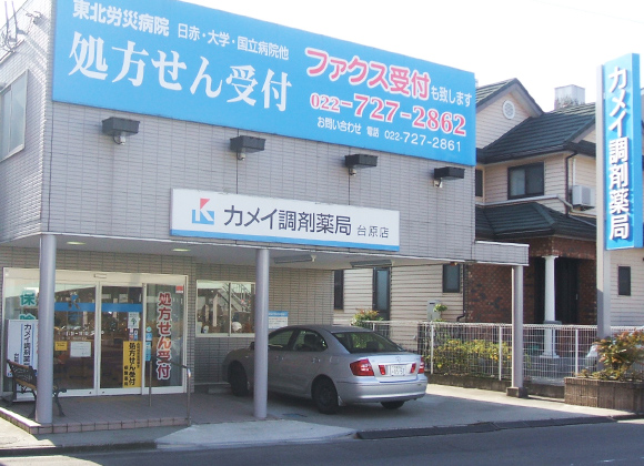 台原店は、東北労災病院前に位置し、約1500品目の医薬品を常備しております。門前病院の処方が多いですが、近隣のクリニックの処方箋や近くにお住まいの方の処方箋も多く受け付けており、地域の皆様にご利用いただいております。