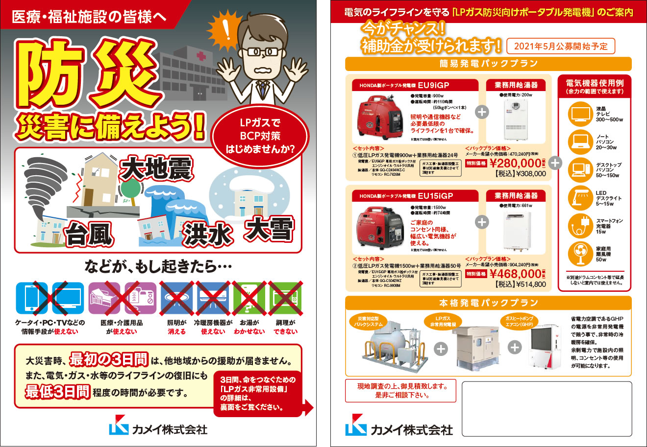 特に避難所や病院、福祉施設等では補助金を活用した導入が可能!