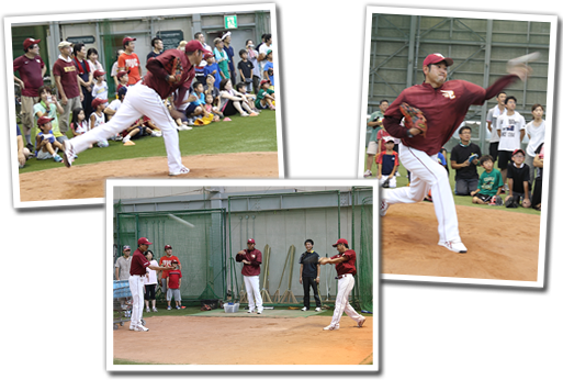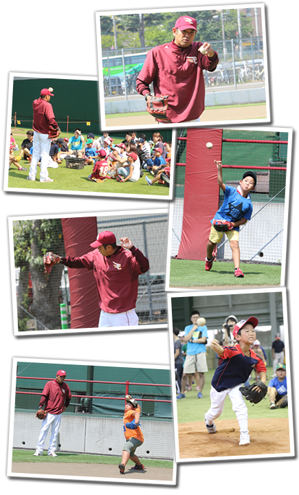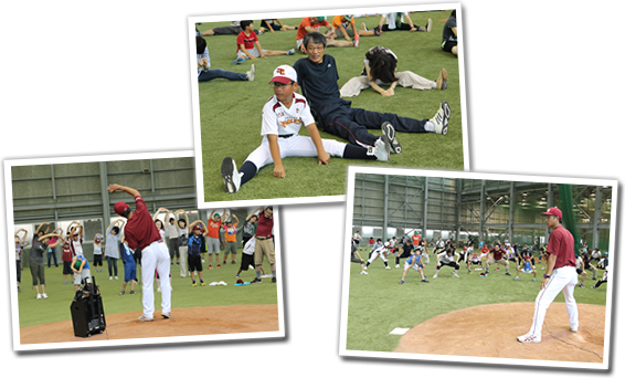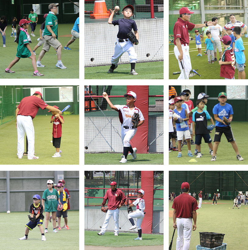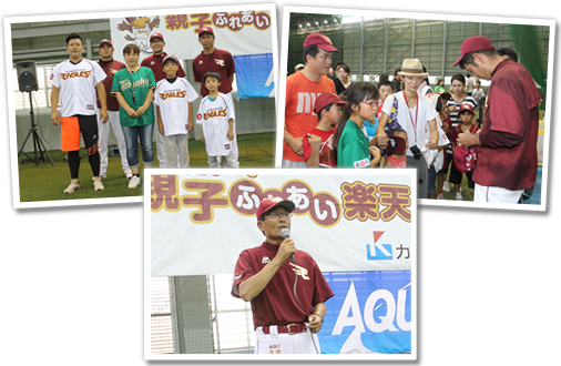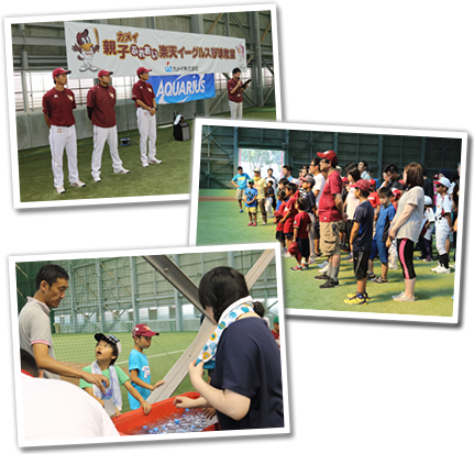 スポーツを通じた児童の健全な育成を目指しスタートしたこのイベントも今年で9回目。今年は、50組100名の親子が集まり、楽天イーグルスのジュニアコーチ指導のもと、楽しいひとときを過ごしました。