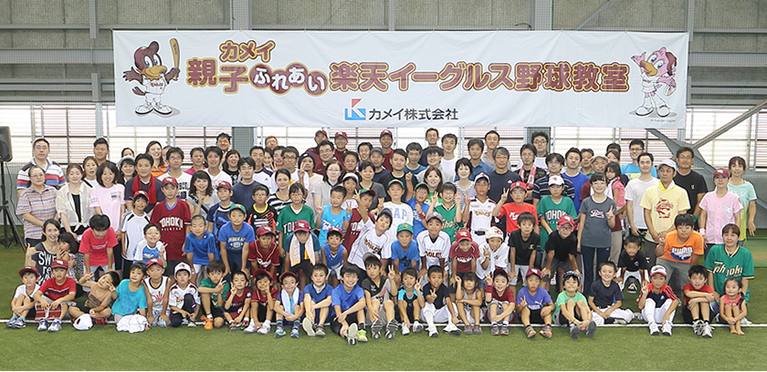 夏の恒例行事となりました「カメイ親子ふれあい楽天イーグルス野球教室」が、8月1日(土)、楽天イーグルスの本拠地である楽天Koboスタジアム(コボスタ)練習場で開催されました。