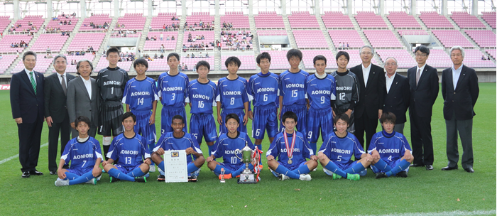 しかし後半25分青森県選抜は檀崎選手のスルーパスに反応し、相手ディフェンスラインの背後に抜け出した八木橋選手が相手ゴールキーパーも落ち着いてかわしてゴール。多彩な攻撃を見せた青森県選抜が4対1と勝利し、優勝しました。