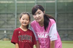 イーグルスが大好きで、ファンクラブにも入っています。普段、野球をプレーすることはあまりないけれど、今日はお母さんと一緒に参加できて楽しかったです。