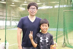 今回の教室はお母さんが見つけて応募してくれました。野球は習っていないけど、バットは家でよく振っているので、打撃練習がとても楽しかったです。将来、野球選手になるのが夢です。