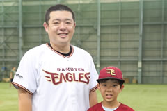 閉会式では「運動不足のお父さん、お母さんはしっかりストレッチをしてください。そして、ぜひ球場に足を運んで楽天を応援してください」と、永井コーチ。鉄平コーチは「僕も両親とキャッチボールをして野球選手になりました。これをきっかけに、親子で野球を楽しんでください」。後藤コーチは「夏休みにこうやってコミュニケーションがとれるのはいいこと。この時期にしかできないことを楽しんでください」と、話してくれました。