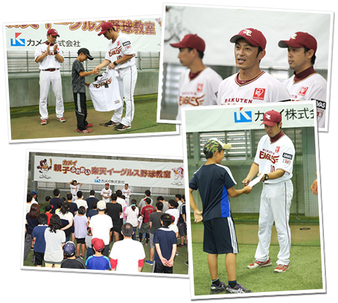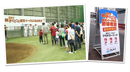 毎年夏恒例の大人気イベント「カメイ親子ふれあい楽天イーグルス野球教室」が、7月28日(土)、東北楽天ゴールデンイーグルスの本拠地である楽天生命パーク宮城 室内練習場で開催されました。