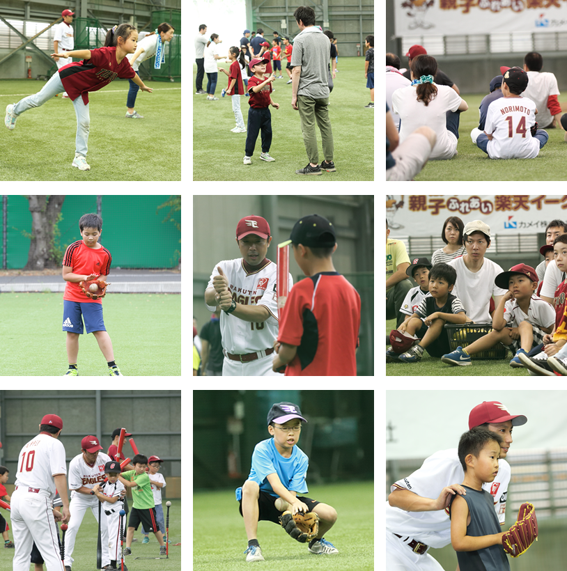 スポーツを通じた子どもたちの健全な育成を目指しスタートしたこのイベントは、今年で12回目を迎えました。たくさんの応募の中から抽選で選ばれた50組100名のみなさんが、楽天イーグルスアカデミーコーチの指導のもと、充実した時間を過ごしました。