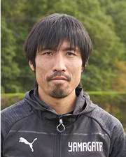 試合開始直後から山形は素早いボール回しで積極的に攻め、背番号16小関一樹選手を中心に果敢にゴールを狙います。山形は、背番号15新井涼太選手、背番号13斉藤大珠選手らがボールに食らいつき、前半17分には、背番号15新井選手が先制点を決めます。