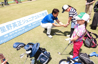 5月11日(土)、宮城県宮城郡にある利府ゴルフ倶楽部で「カメイ・星野英正ジュニアゴルフ教室」が開催されました。