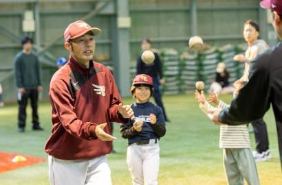 2025年11月30日(日)、楽天モバイルパーク宮城室内練習場にて、「カメイ親子ふれあい楽天イーグルス野球教室」が開催されました。