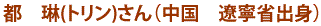 日本には都琳さんと同じく高校から来ました。今は脳の研究 や生物学も勉強しています。日本に住んでいると両親に会え ないのがやっぱり寂しいですね。将来は今勉強している事を 活かして脳の研究をしたいです。私の故郷の遼寧省と比べる と少し東北の方が寒いですけど、仙台はとても住みやすいで すね。日本にいる間に北海道には行ってみたいです。 去年も参加したんですけど今年もホントに楽しかったです。