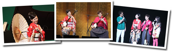 祥さんの演奏に合わせて咲千絵さんが「手踊り」を披露。演奏もさることながら中腰で滑らかな踊りは見事。また、じょんがら節のオリジナル合奏曲「花吹雪」では繊細かつ大胆で激しい津軽三味線の音色が会場内を魅了していました。
