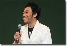 サービス精神旺盛で一人ひとりに語りかけるように繰り出されるトークに会場は大爆笑。また、笑いだけでなく被災地で出逢った少女の話には胸があつくなりました。小学2年生の少女が2枚の折り紙にサインを求めてきて「お友達にもよろしくね」とコロッケさんが少女に言った時「お友達は天国に行っちゃったから、私が天国に行く時に持っていってあげます」と言ったそうです。そのとき、改めていろいろなことを考えさせられたそうです。そして「メッセージを残していけたらいいなということで、真面目に一生懸命歌います。これからも自分たちでできることは、ちゃんと長く続けていきます」と長渕剛さんの「ひとつ」を熱唱。