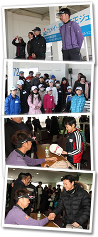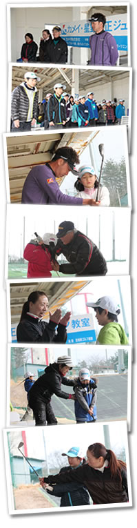 第6回目を迎える「カメイ・星野英正ジュニアゴルフ教室」。数週間前の大雪の影響で、まだ雪の残る宮城ゴルフガーデンに、小学校低学年から高校生までのジュニアゴルファー計38人が集合。