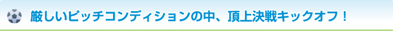 近づく台風の影響で大雨が降る中、午後1時、宮城県選抜対山形県選抜による決勝戦がキックオフ。2014年東北ナンバーワンを決する戦いの火蓋が切られました。